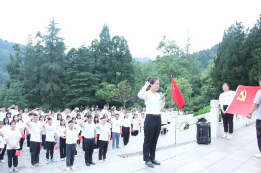 随后,学生第二党支部书记谭雪露老师带领党员同志重温入党誓词,铿锵有力的宣誓声响彻整个纪念广场,久久回荡,这是初心使命的再宣示,这是接续奋斗的再出发。