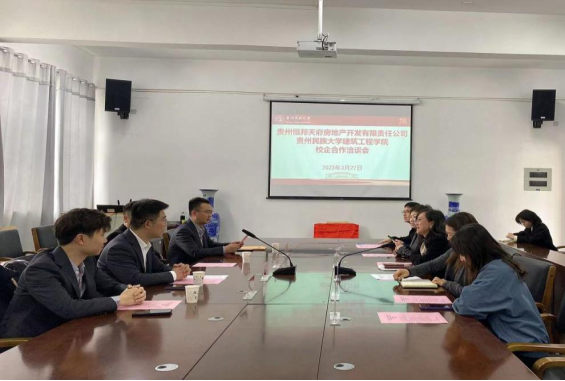 为进一步落实2023届高校毕业生春季促就业攻坚行动,加强校企战略合作,深化产教融合发展, 3月27日上午,必威BETWAY西汉姆联与贵州恒邦天府房地产开发有限责任公司校企合作洽谈会在建工学院A504会议室顺利举行。四川恒邦天府集团贵州区总经理范紫微、营销中心总经理鲁赟、人力资源部部长叶嘉文、行政部部长刘峰瑜,必威BETWAY西汉姆联党委书记何璘、建筑与规划系主任舒净、系副主任陈玫、办公室负责人余进江出席会议,会议由学院党委副书记陆忠婷主持。