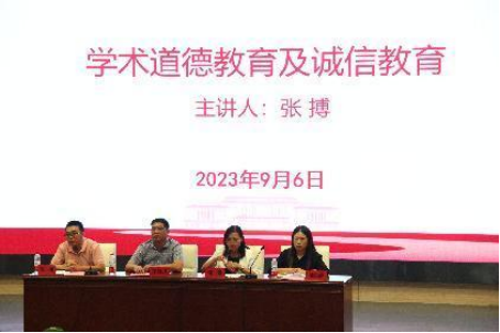 会上,张搏老师做《学术道德教育及诚信》教育,张搏老师提出,在网络时代,知识的获取非常便捷,人工智能对我们提出了新的挑战。在下一步学习中,希望新生能努力学习,独立思考,自主创造。