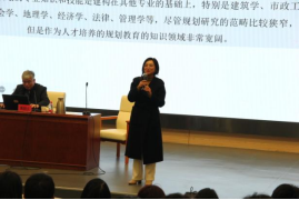 当大家还在回味上半场讲座时,下半场讲座悄然开场。周剑云教授以《规划职业/专业的缘起、传播与演化》为题,首先从规划职业在英国的兴起与演变切入主题,提出规划是革命主义思想和改良主义思想的融合,强调规划是必须基于国家法律要求下完成的,并剖析了规划职业存在的问题。同时,周剑云教授提到英国规划如何从实践、思想、制度、技术几个方面影响中国规划的发展,并介绍了近代以来至今中国规划的发展沿革。周剑云教授还从政府部门、规划设计院、咨询与服务机构、教育与科研机构几个方面介绍了我国规划职业/专业的特征,最后从规划实施、规划实施监测与评估、规划救济、中国语境的职业化与专业化趋势等几个方面展望了规划职业/专业的发展与未来。周剑云教授在讲座中多次提到建筑师、规划师的使命,激励学生们脚踏实地、向下扎根、向上生长、厚积薄发。