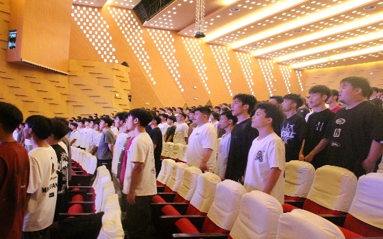 会议在庄严肃穆的《义勇军进行曲》中拉开帷幕。陆忠婷副书记介绍出席会议的领导及老师,并播放了BETWA西汉姆联宣传片,为新生们展示了学校的精神风貌和办学历史。在入学教育会上,何璘书记以发扬奥运精神为主题,发表了关于理想信念、爱校荣校及适应性教育的讲话;陆忠婷副书记以校纪校规为重点,围绕心理健康和生命健康进行安全教育;魏勇老师则就职业生涯规划、学术道德、励志教育进行了分享。最后,陆忠婷副书记在大会上作军训动员,强调了军训期间的纪律要求,并告诫广大2024级新生在军训过程中需注意安全。大会在慷慨激昂的《中国人民解放军军歌》中圆满结束。