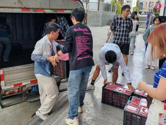 老师及学长学姐们精心准备了清凉解渴的水果,向大一新生传递学院的关怀。