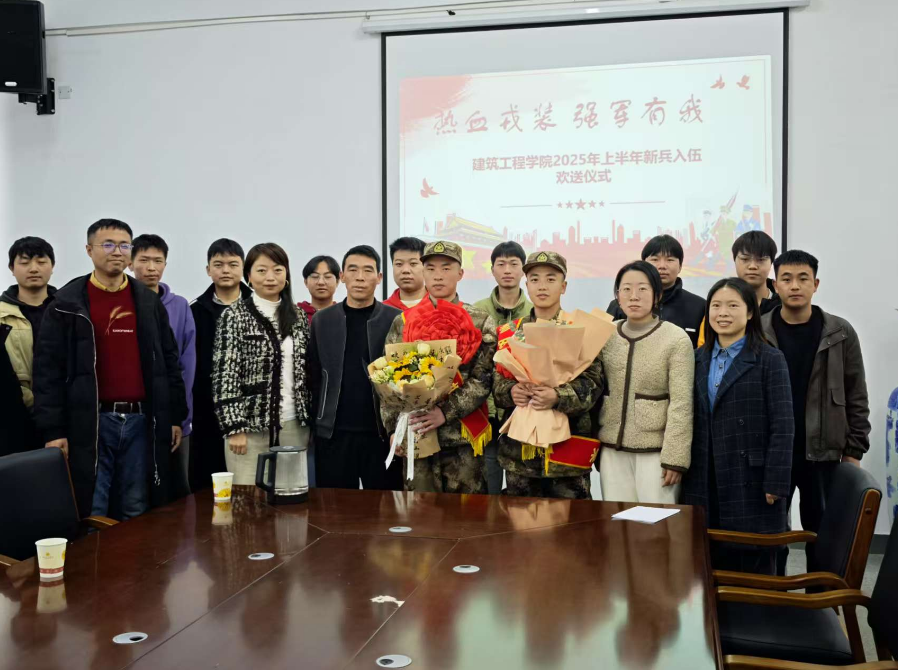 欢送会上,辅导员周泉老师介绍了学院2025年征兵工作开展情况。在现场交流中,来自2023级土木工程专升本1班的新兵张诚同学表达了对学校、学院、老师及同学的感激之情,并表示一定不忘初心、不辱使命,做一名优秀的战士;来自2020级城乡规划1班的新兵肖文豪则表示,参军入伍既是对青春的一次淬炼,更是对家国情怀的坚定回应,自己一定珍惜机会、刻苦训练,不负老师、家人的期望。