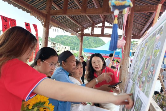 接着课程团队结合各个村民组的文化特色,上演了蒙贡酒飘香、蜡染山水间、苗歌敬烈阳、状元糕接力、瓶盖弹趣味、请龙庆大暑等活动,并用最质朴的语言向村民朋友们讲解各村民组规划方案,村民们认真聆听,结合自身的生活经验和对村庄的了解,积极提出意见和建议,让村民朋友们看到了乡村振兴的希望。