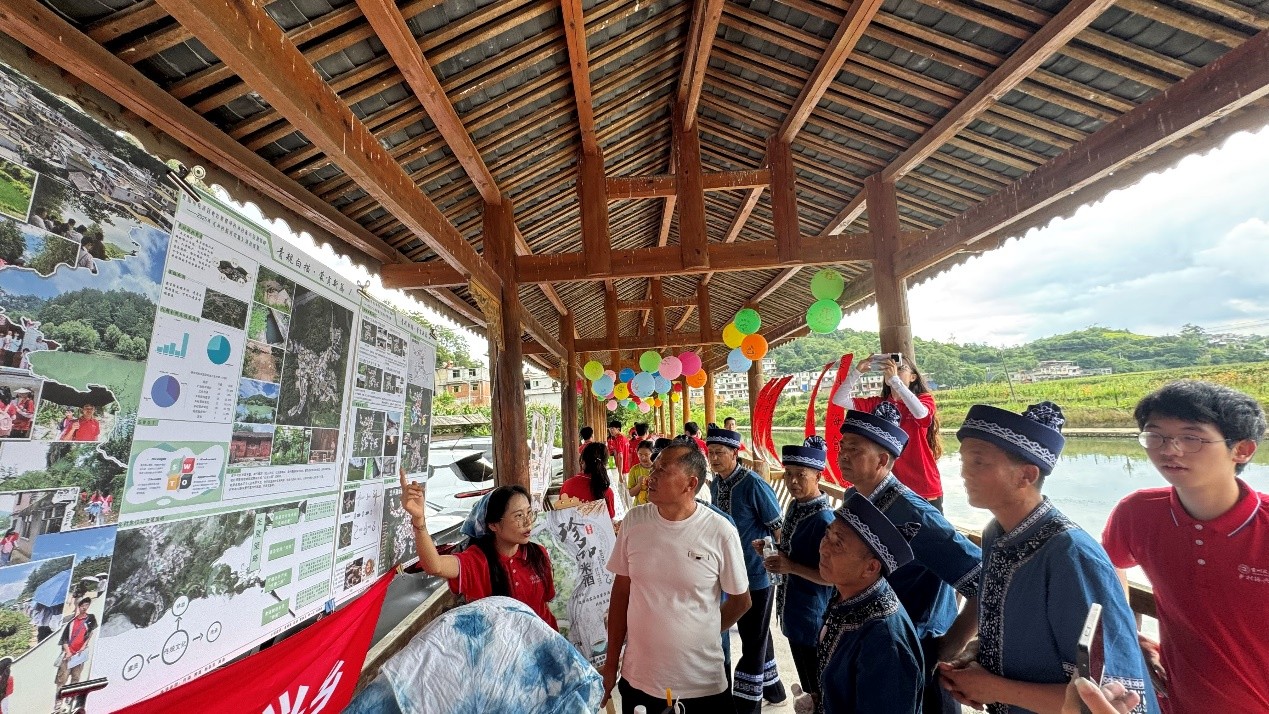 实践团成员向村民展示成果