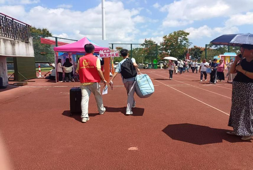 迎新当日,校园内处处洋溢着热情与活力。高大的彩虹门、清晰醒目的指示牌、内容丰富的学院展板,共同营造出热烈而温馨的迎新氛围。在迎新报到点,各项工作有条不紊:身份核验、资料分发、住宿办理等环节衔接流畅,极大缩短了新生的报到时间。学院特别设立的“绿色通道”,为家庭经济困难学生提供一站式贴心服务,确保每一位学子都能无忧入学。