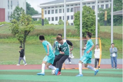 后勤的同学们站在足球场外,专心致志地关注着场内的情况,源源不断的加油声让现场充满激情。双方队员在赛场上你攻我守,你争我夺,每位参赛者都顽强拼搏,为现场观众呈现了一场精彩纷呈的足球赛。
