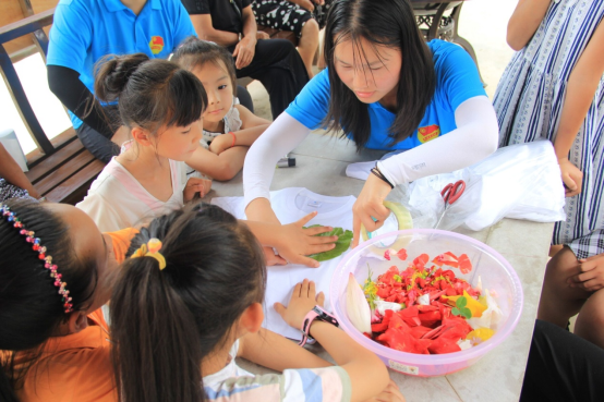 按照计划,今天的实践项目包含了为村里的小朋友们进行一场安全讲座、带领小朋友们体验拓染工艺以及进行学业辅导。到达实践地点之后,志愿者们开始有条不紊地开展工作,他们准备充分、各司其职,按照计划逐项完成今天的实践任务。