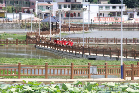 实践队队员们向村委会走来的场景